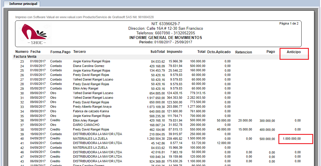 Ten en cuenta que podrás realizar la consulta de los anticipos relacionados a tus facturas en los informes Movimiento Gral Lista ó Pagos a Facturas por Cobrar. Ver aquí Movimiento Gral Lista