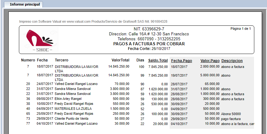Pagos a Facturas por Cobrar