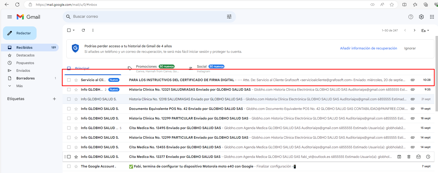 1. En tu correo electrónico, ingresa al mensaje enviado por servicioalcliente@grafosoft.com