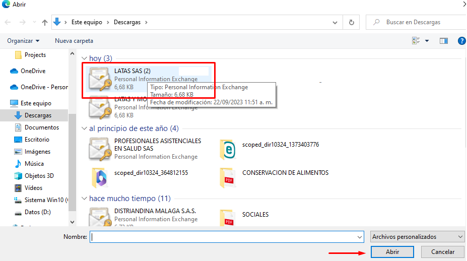 4. Selecciona el archivo y has clic en el botón Abrir.