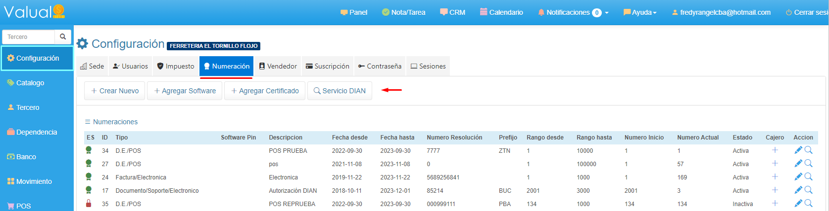 4. Finaliza verificando datos y usuarios asignados a la numeración.