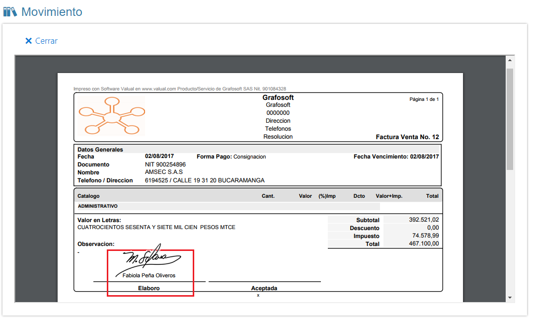 Ahora la Impresión de tu Comprobante se visualiza de la siguiente forma: