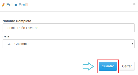 4. Edita Nombre y/o País. Para finalizar haz clic en Guardar.