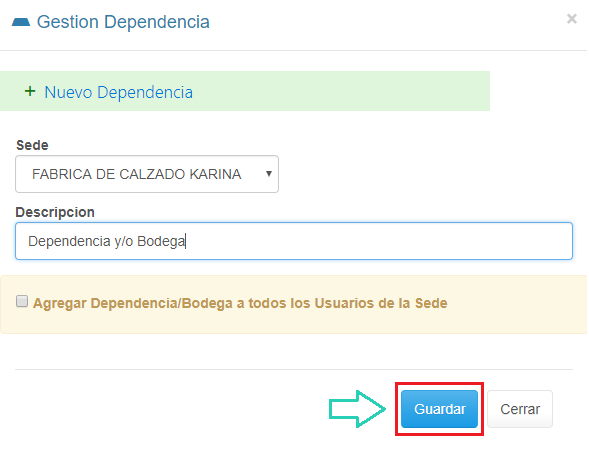 Puedes asignar Dependencia/Bodega por Usuario del sistema. |