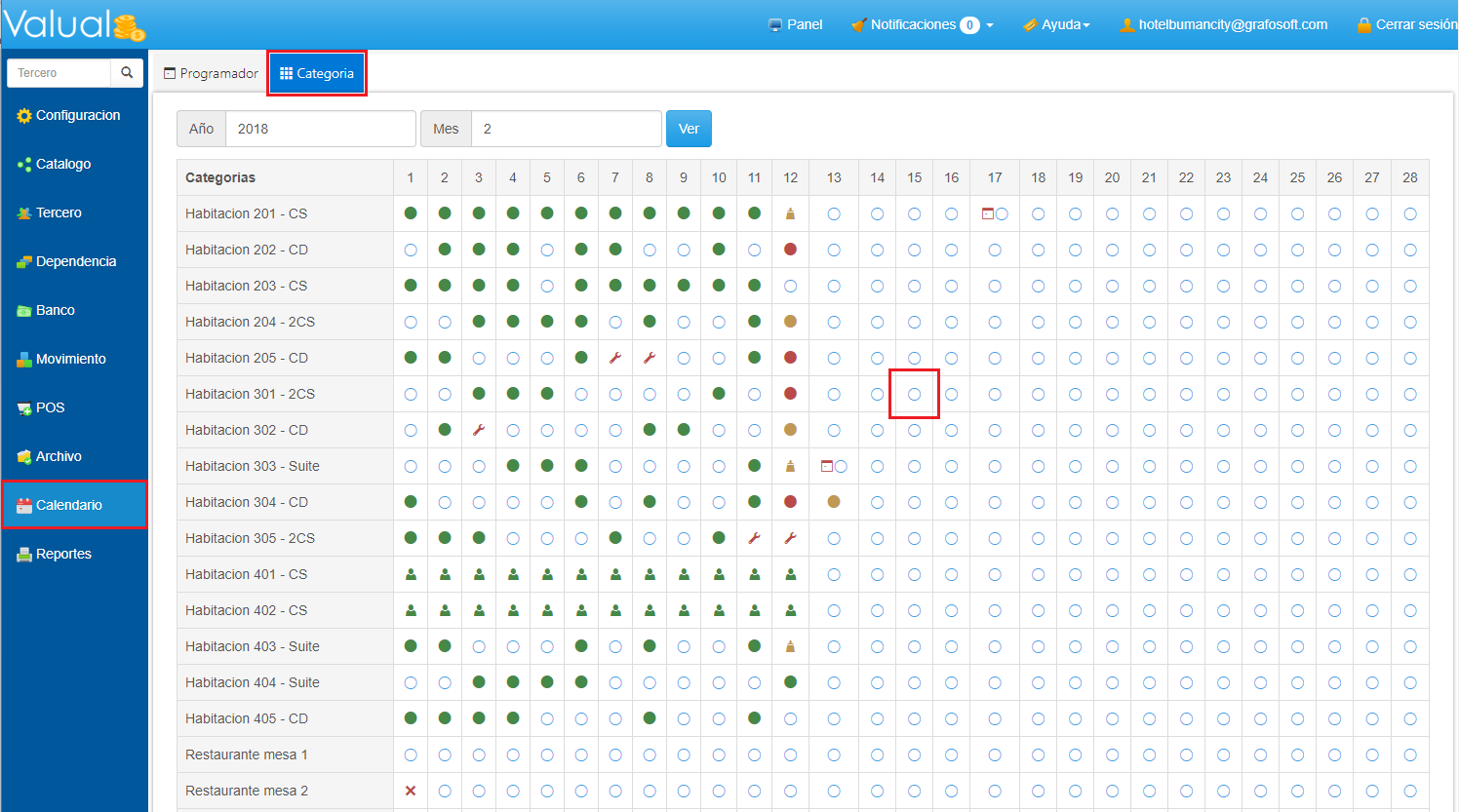 1. Selecciona la opción Calendario en el Menú Principal de Valual. 2. Selecciona Categoría. 3. Haz clic sobre la Categoría y la fecha en la que deseas crear el Evento.