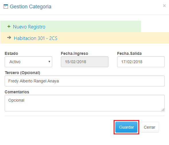 4. Ingresa los datos de la Reserva y haz clic en el botón Guardar.