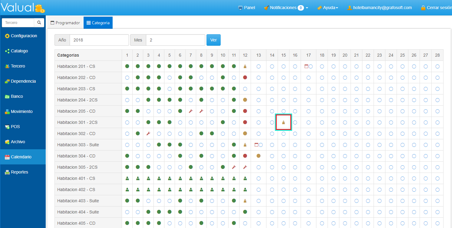 Tu Reserva se visualiza en el Tablero de Estados de las Categorias asi;