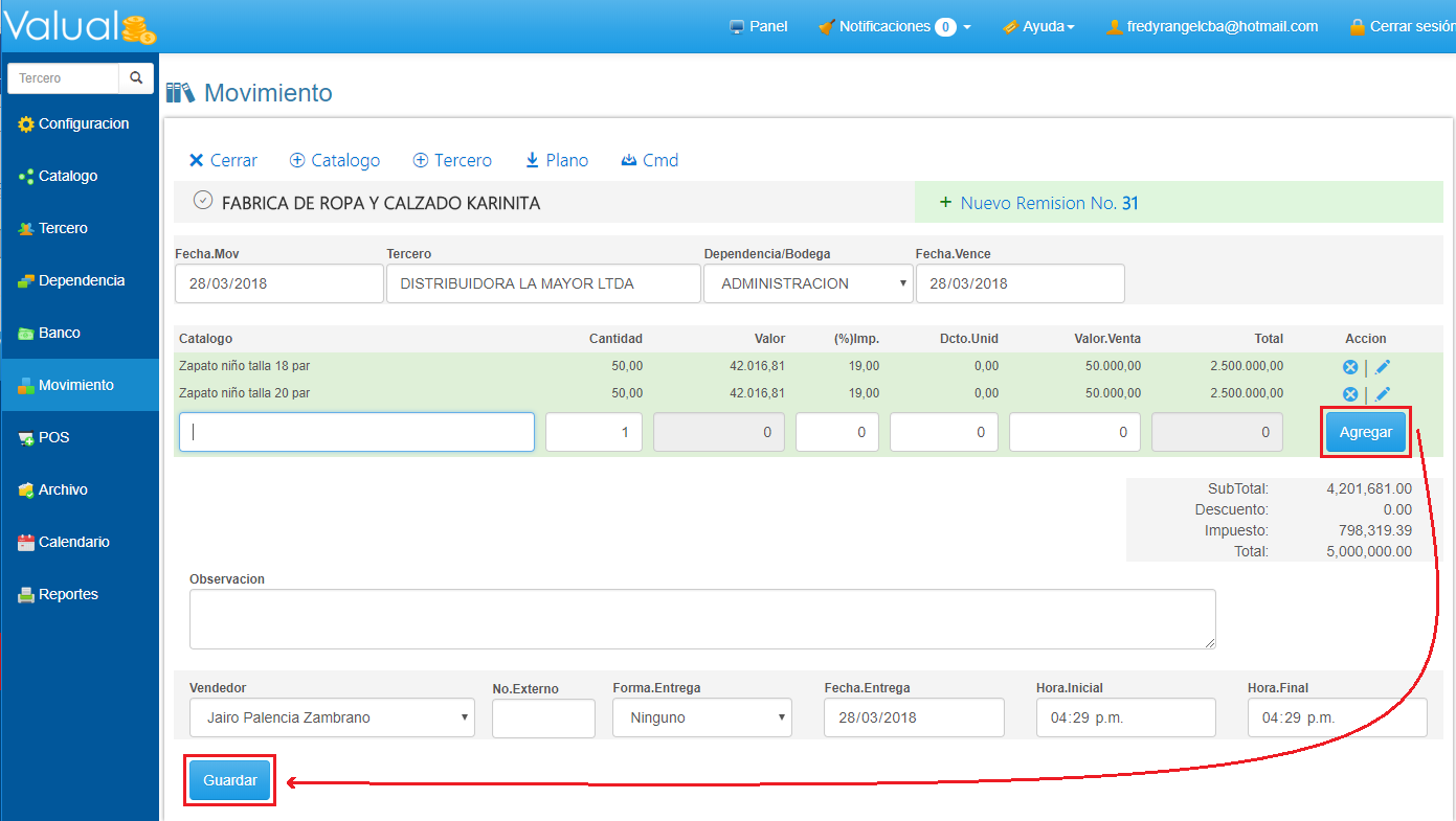 ✓ Al seleccionar Dependencia/Bodega estarás indicando la Bodega de donde va a salir el Producto.
