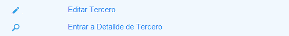 1. Selecciona Tercer en el Menú Principal. 2. Digita en nombre del Tercero que vas a consultar y presiona la tecla Entrar ó haz clic en el botón Buscar.