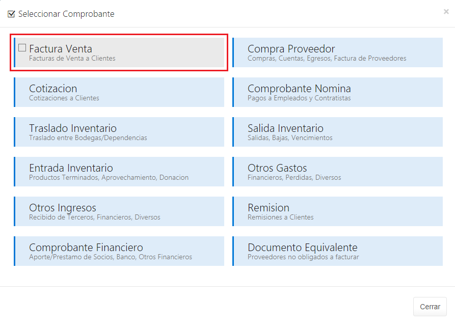 3. Selecciona Factura de venta.