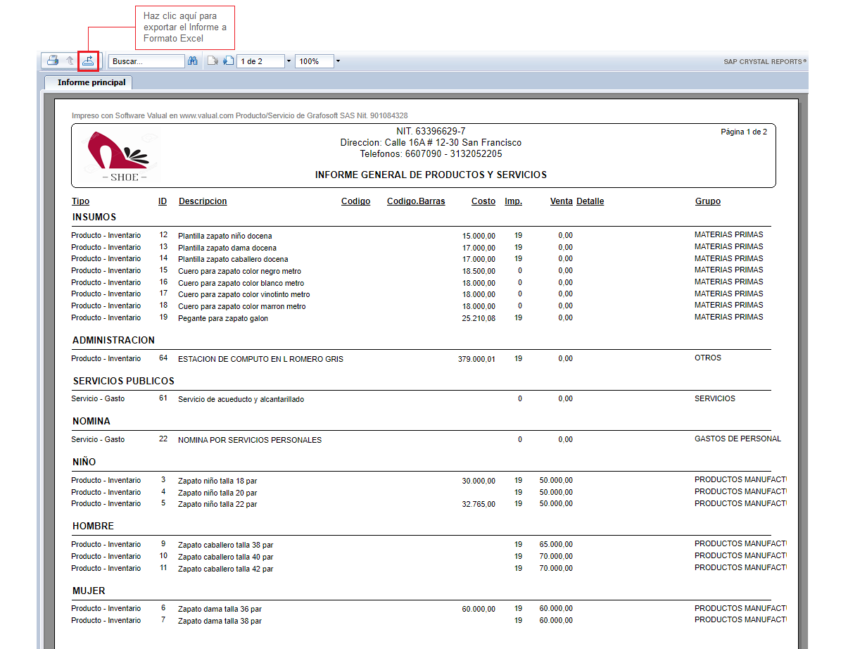 3. En el informe haz clic en el botón Exportar para llevar el archivo a formato Excel.