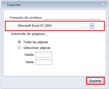 4. Selecciona el formato de archivo Excel y haz clic en el botón Exportar.