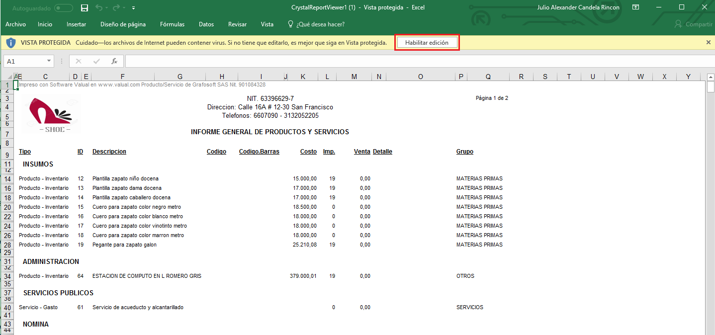 5. Abre el archivo que se descarga y haz clic en la opción Habilitar Edición para trabajar con los datos.