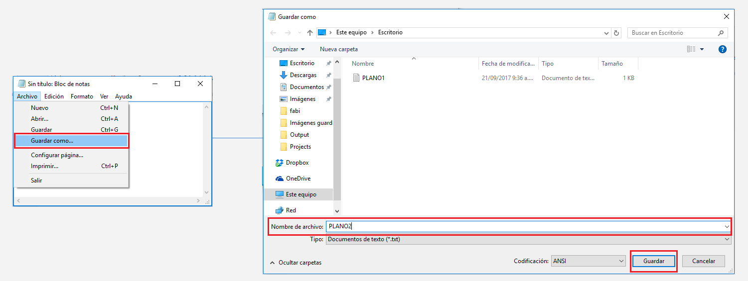 7. A continuación haz clic en Archivo, selecciona la opción Guardar Como, elige un nombre para el Archivo Plano y para finalizar haz clic en Guardar.