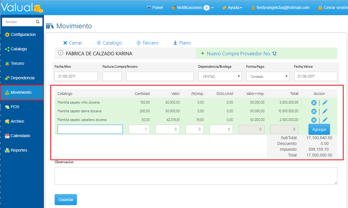 8. Ahora puedes proceder a generar el Comprobante Factura Venta. Ver aquí Compra Proveedor. Ver aquí |