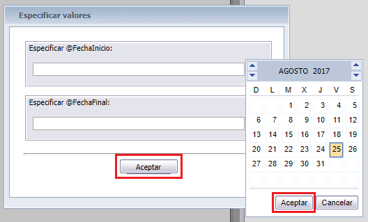 3. Ingresa las Fechas en las que quieres generar tu Informe de Entregas y para finalizar haz clic en Aceptar.