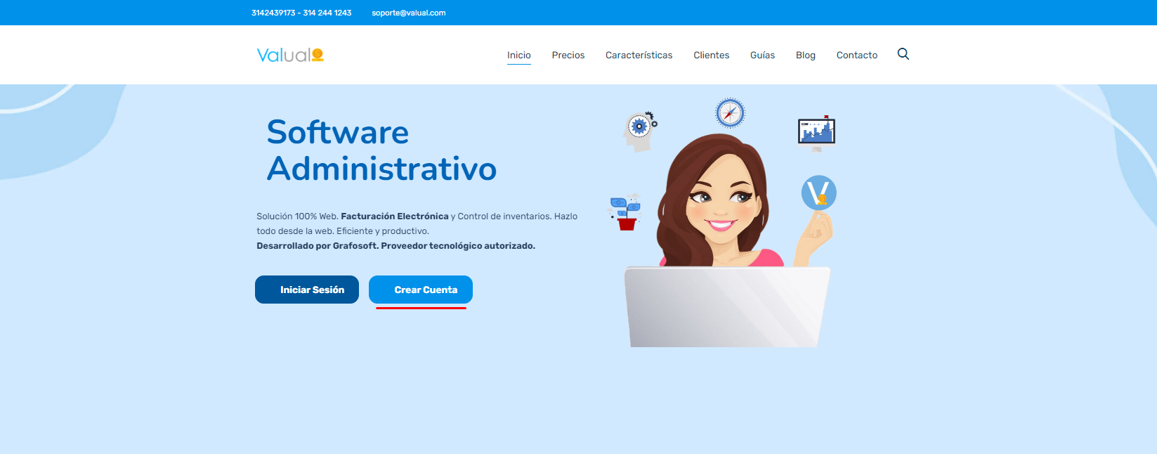 1. Ingresa a la página de información www.valual.com y haz clic en el botón Crear Cuenta.