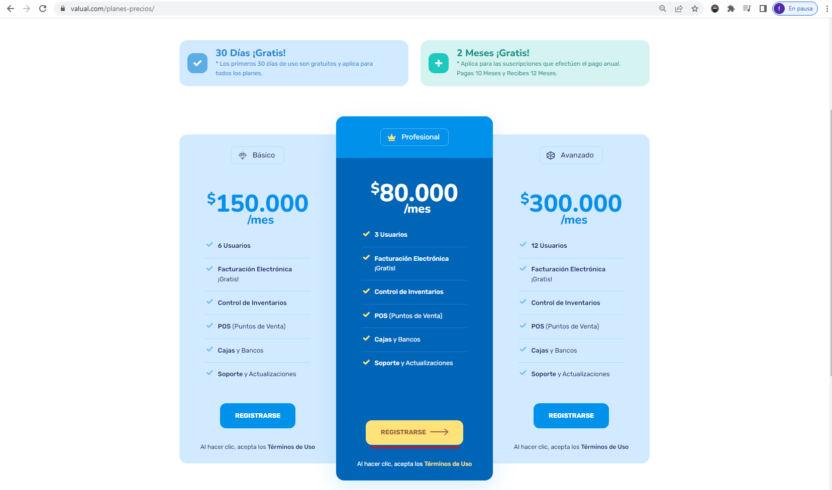 2. Elige el plan requerido y haz clic en el botón Registrarse.
