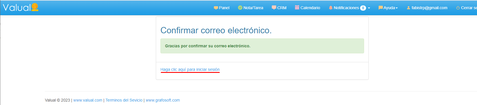 5. Al pulsar en el enlace automáticamente, serás redirigido a la página de Inicio de Sesión para empezar tu ¡Experiencia con Valual!