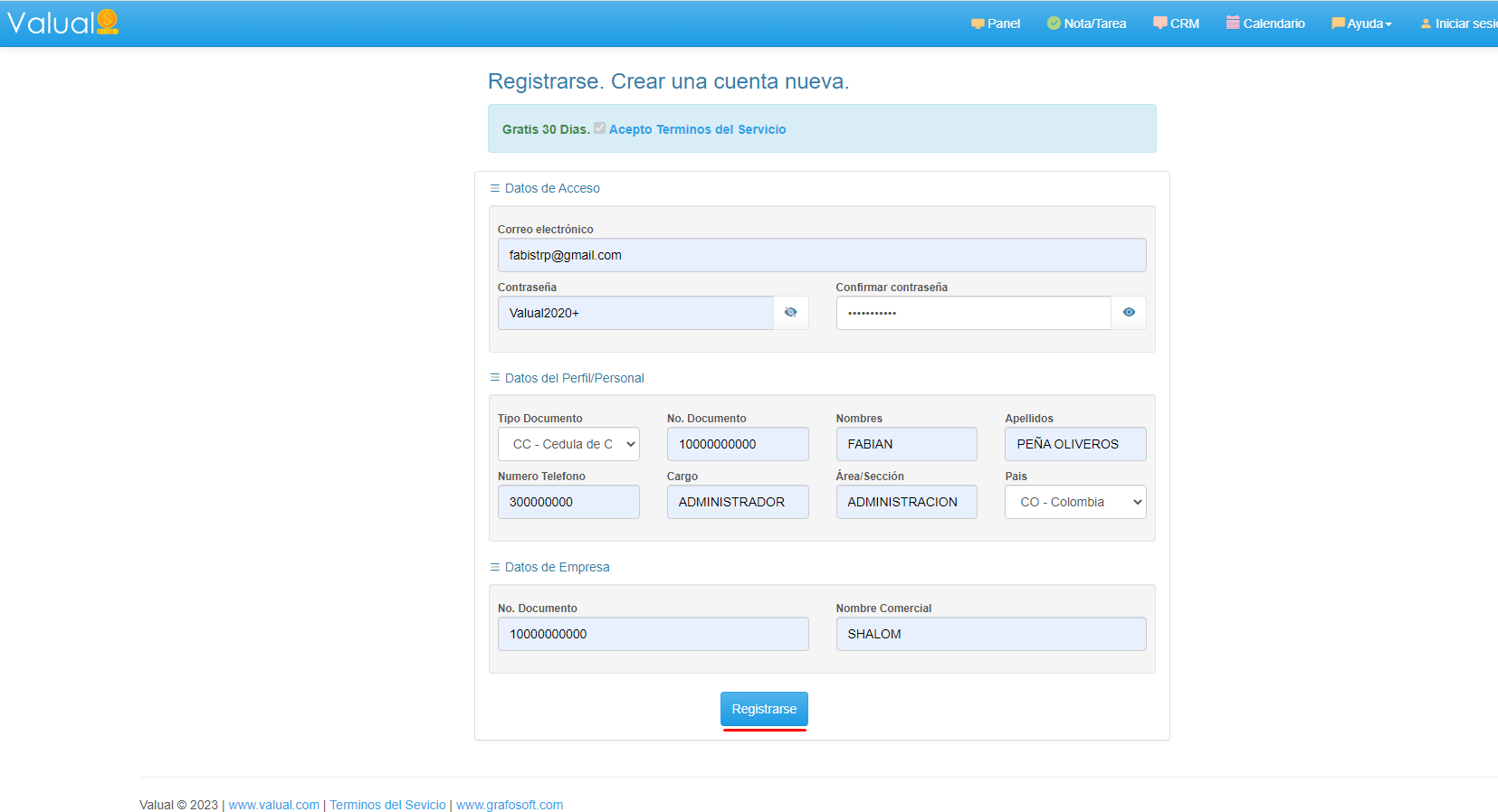 3. Ingresa los datos del formulario de registro y haz clic en el botón Registrarse.