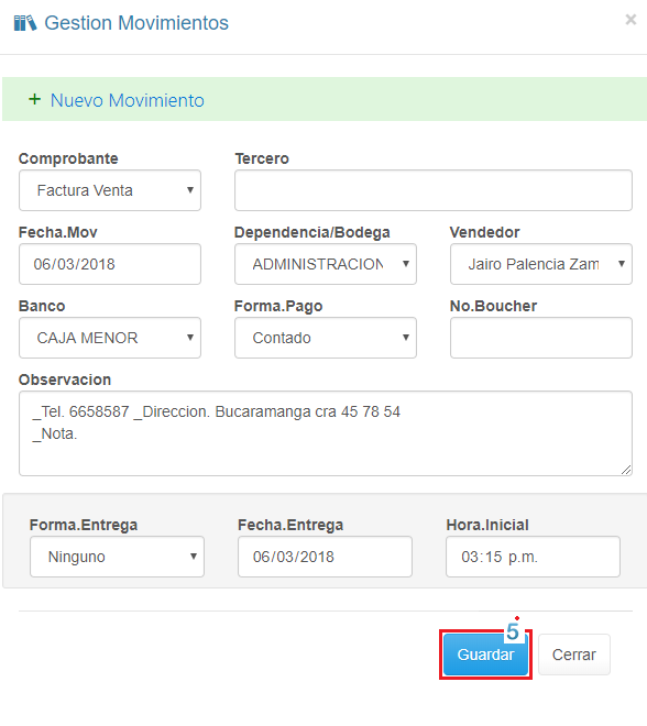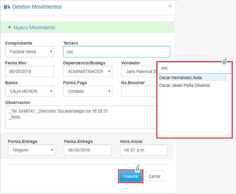 5. En el campo Tercero, realiza la busqueda del mismo, previamente creado en el modulo Tercero de Valual, seleccionálo y haz clic en el botón Guardar.