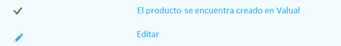 2. Para relacionar el Producto registrado en la Orden de Pedido, con el Producto creado previamente en el Catalogo de Valual, haz clic en el icono en forma de Lapiz.